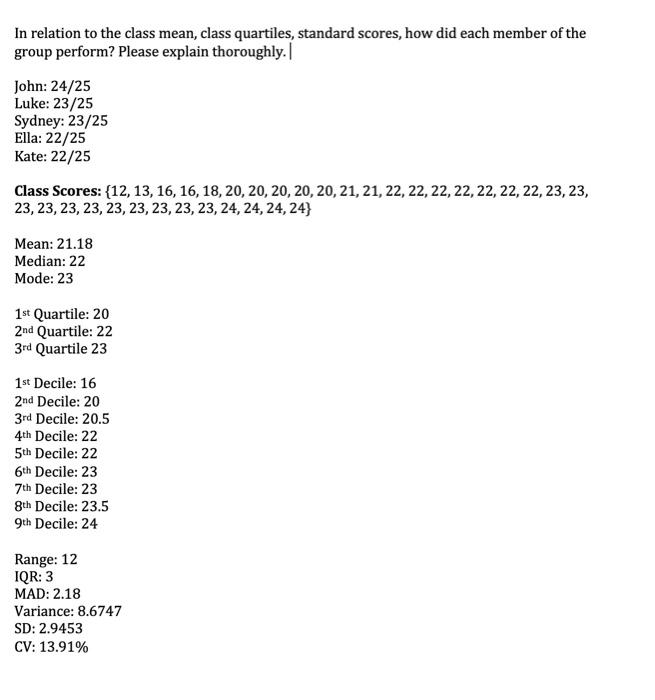 Solved In Relation To The Class Mean Class Quartiles Chegg Com
